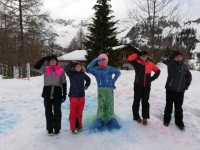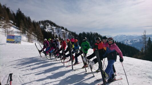 Auch das Wetter meinte es gut mit uns und so konnten alle Tage super genutzt werden. Insgesamt waren wir mit 5 Skigruppen und 1 Alternativgruppe unterwegs. Bei der Alternativgruppe standen Langlaufen, Schneeschuhwandern, Skulpturenbauen, Ringe- und Matratzenrutschen und der Bau einer Schneehöhle am Programm. Bei den Skigruppen natürlich das Skifahren mit abschließendem Rennen und Siegerehrung. Zusätzlich wurden alle Kinder von der AUVA bezüglich Sicherheit und Erste Hilfe geschult. Die fortgeschrittenen Skifahrer konnten darüber hinaus noch das Suchen von Verschütteten mittels LVS Geräten (Pieps) ausprobieren.
