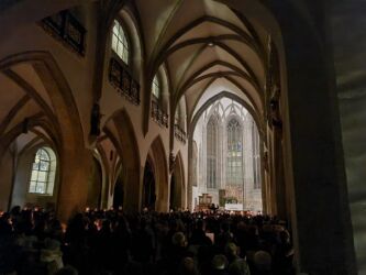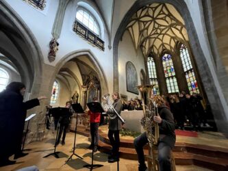 Nach einem gemeinsamen musikalischen Einzug bei Kerzenschein boten beide Chöre ein abwechslungsreiches und besinnliches Konzertprogramm. Texte über Weihnachten und die Adventszeit, die drei Schüler*innen aus den 3. Klassen selbst verfasst haben, wurden zwischen den Chorblöcken vorgetragen. Verschiedene Ensembles stimmten das Publikum mit weihnachtlichen Klängen auf die Adventszeit ein.
