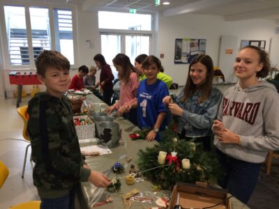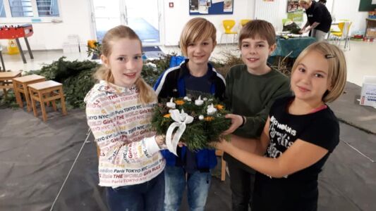 Auf die kommenden Adventwochen eingestimmt haben sich unsere Schülerinnen und Schüler indem sie gemeinsam Adventkränze und Adventgestecke für die Klassen anfertigten. Auf Initiative von Frau Nicole Lengauer basteln unsere Schülerinnen und Schüler jedes Jahr die Adventkränze für ihre Klassenzimmer selbst. Eltern und Lehrerinnen unterstützen die Kinder dabei und zeigen vor, wie es geht. Nach ein bis zwei Stunden sind dann wunderschöne Kränze und Gestecke produziert und die Schülerinnen und Schüler präsentieren ihre Werke stolz den Mitschülern.