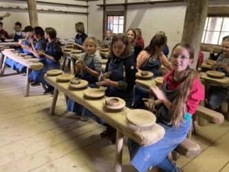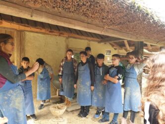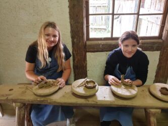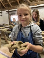 In Workshops stellten die Schüler*innen Schalen aus Lehm her und fertigten Schmuck aus Kupfer und Bronze. Beim Rundgang durch das Keltendorf bekamen sie nähere Einblicke in den Alltag der keltischen Dorfbewohner. Besonders von den gebackenen Fladenbroten konnten sie gar nicht genug bekommen. Lecker!