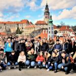 In Linz stand ein Besuch der VOEST Stahlwelt auf dem Programm und in Krumau wurde dem barocken UNESCO Welterbe nachgespürt. Ein besonderes Highlight nicht nur für die ausländischen Besucher, sondern auch für die Freistädter Schülerinnen und Schüler war der Besuch des Färbermuseums in Gutau. Zuerst gab es eine Führung durch das Museum und dann konnten die Schülerinnen und Schüler den ganzen Tag lang verschiedene Stoffe im Blaudruckverfahren bedrucken.