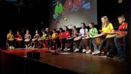 Ebensolche Begeisterungsstürme gab es beim Rap des „Buama-Chors“, beim Medley aus dem Musical „My fair Lady“ der 3. Klassen sowie bei den Liedern, Tänzen und Ensemblestücken der 4. Klassen.