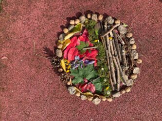 September 2025, ein warmer Montagnachmittag – also ab ins Freie. Nur mit Blättern, Zweigen, Blüten, Muscheln, Steinchen in den bunten Farben, die der Herbst zu bieten hat, gestaltete die 2d kunstvolle LandArt in Form von Mandalas, einer Blume oder eines Herzens. Die tollen Kunstwerke sprechen für sich.