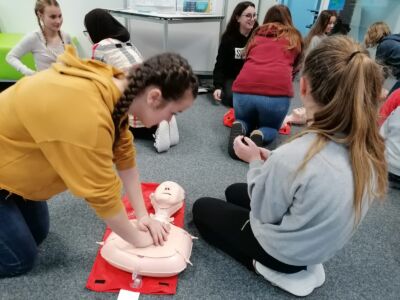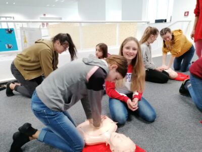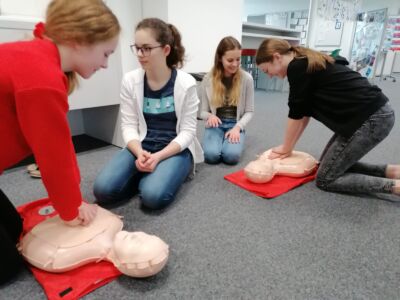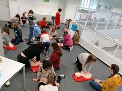 Wir wollen, dass unsere Schüler/-innen später keine Hemmungen haben und im Ernstfall genau wissen was zu tun ist. Darum haben wir es uns zum Ziel gemacht, dass jede/r Schüler/-in mindesten 1 Einheit pro Schuljahr die Herzdurckmassage im Rahmen des Biologie- bzw. Sportunterrichts übt.