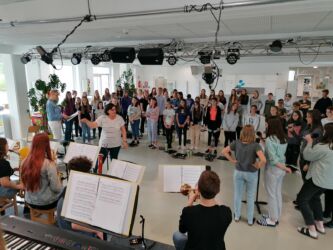 Wenn man derzeit durch unsere Schule läuft, wird schnell klar „Da tut sich was!“. Man trifft auf probende Tänzerinnen, kostümierte Schüler*innen, vernimmt singende Chöre und Klänge der Band, egal wo man sich gerade aufhält.