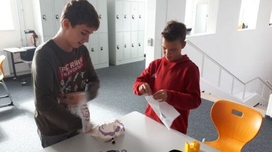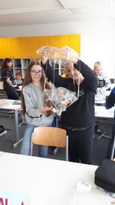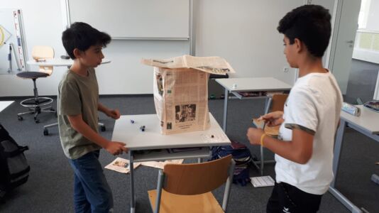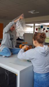 Eine spannende Physikstunde erlebten die Schüler/-innen der 2b vor Kurzem. Um physikalischen Kräfte wie Luftwiderstand, Gravitation und Auftrieb zu testen, wurden Fallschirme gebastelt und anschließend getestet. Der Fallschirm, der als letzter den Boden berührte, gewann. Auf die Plätze … fertig … los …