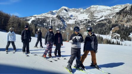 Viele unserer Schüler*innen sind schon gute Skifahrer*innen und neben dem Spaß auf der Piste stand die Verbesserung des eigenen Könnens auf dem Programm. Sehr stolz sind wir aber wieder auf unsere Anfänger. 16 Schüler*innen erlernten in einer Woche das Skifahren und konnten am Freitag bereits rote Pisten sicher bewältigten.